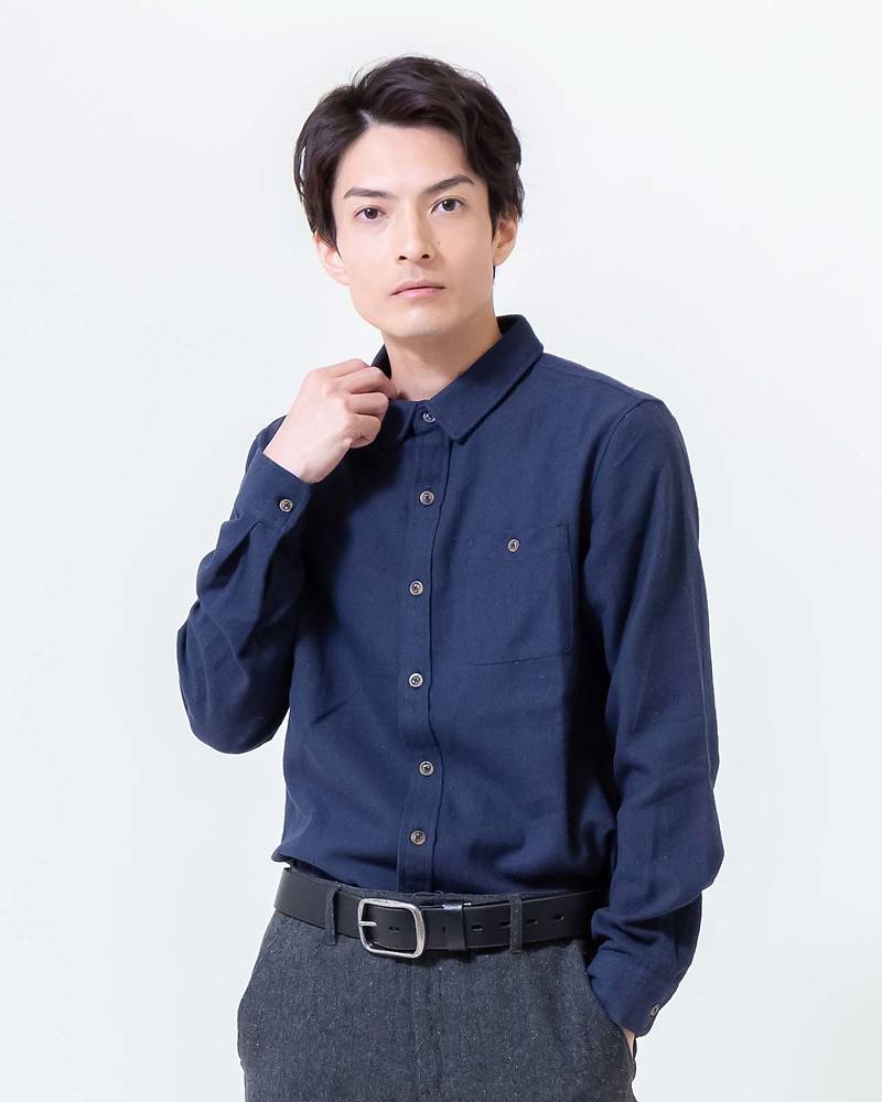 ネル無地レギュラーシャツ(ネイビー)