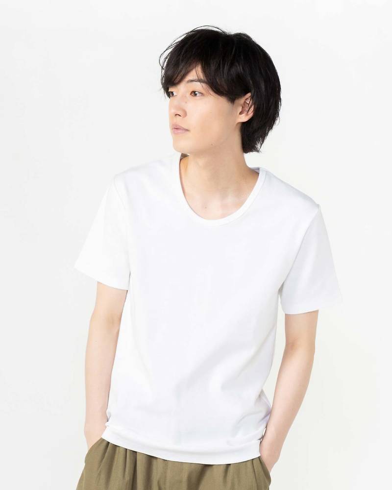 スパンフライスUネック半袖Tシャツ(ホワイト)