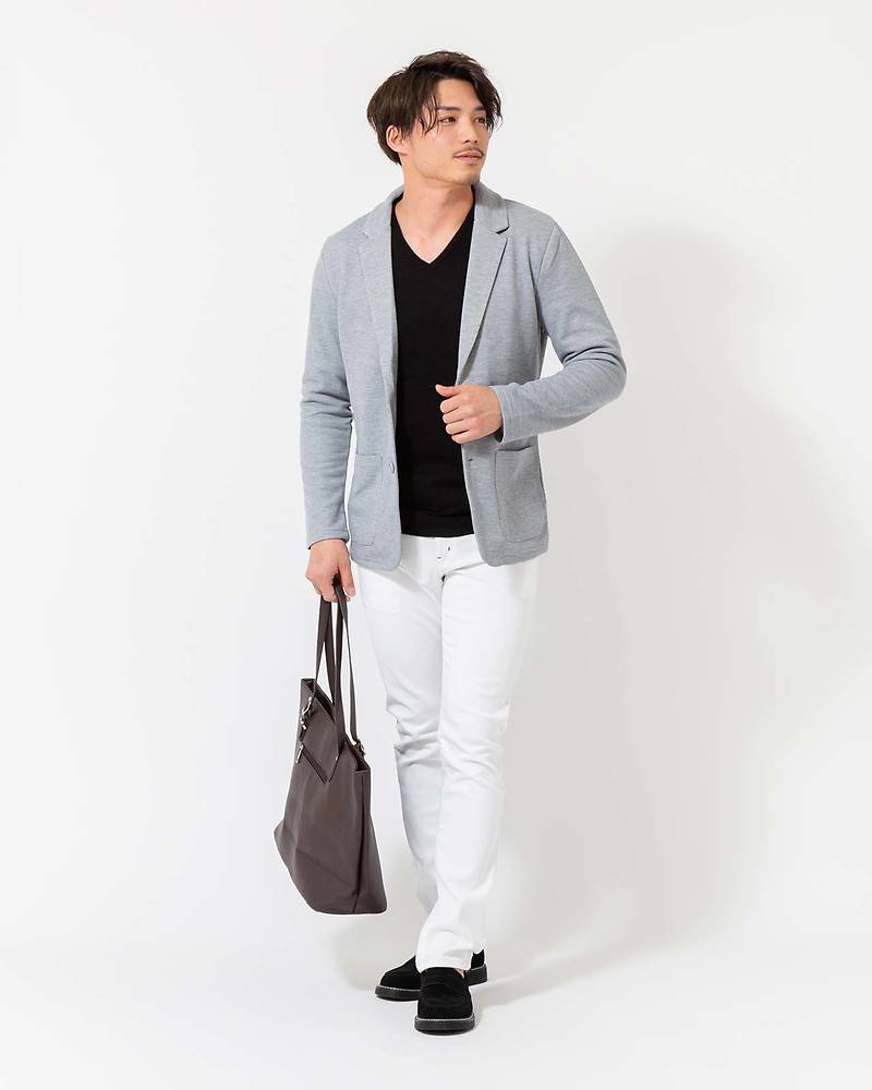 清潔感のある白のTシャツは、ジャケットコーデとの相性が抜群です!