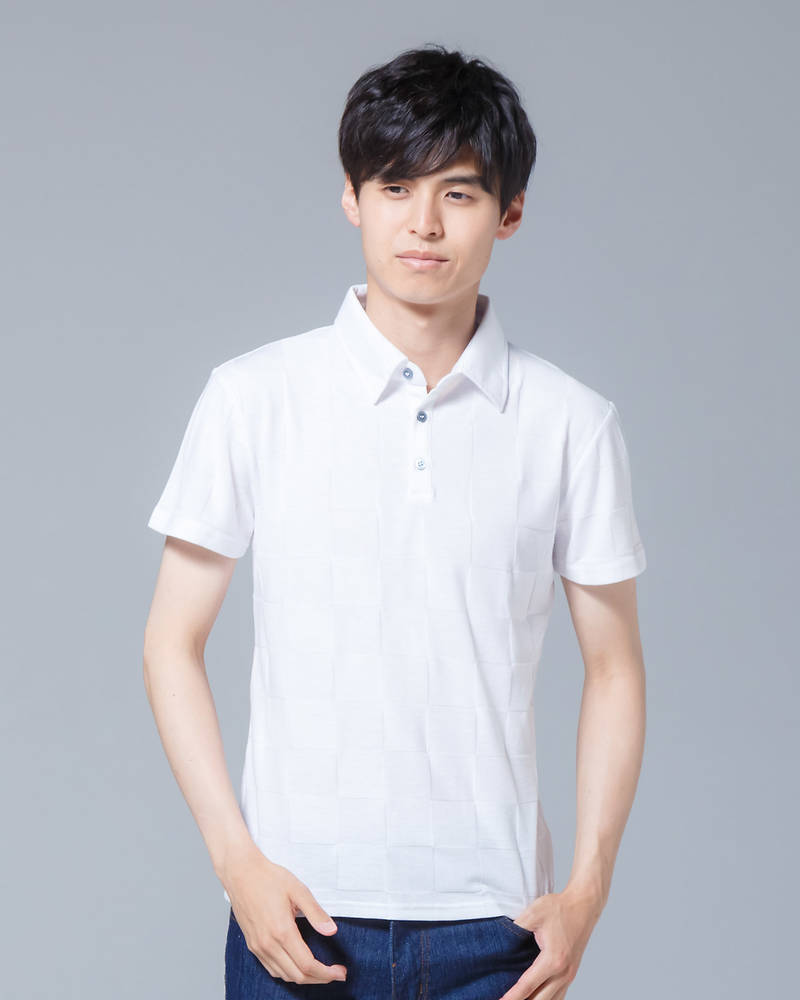 ブロックジャガード半袖ポロシャツ(ホワイト)