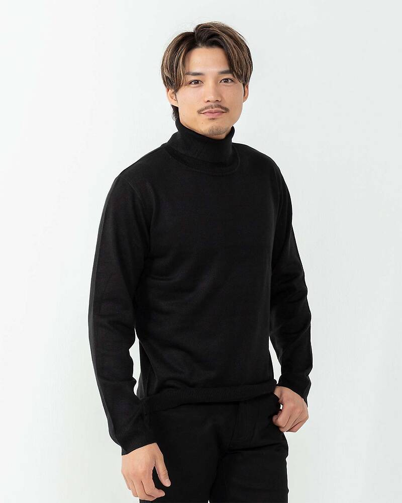 カシミヤタッチタートルニット(ブラック)