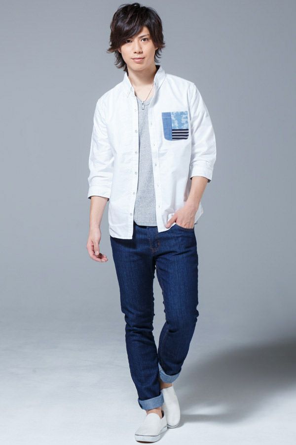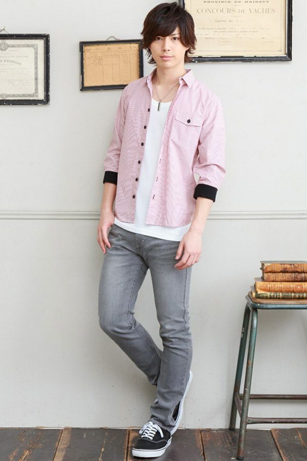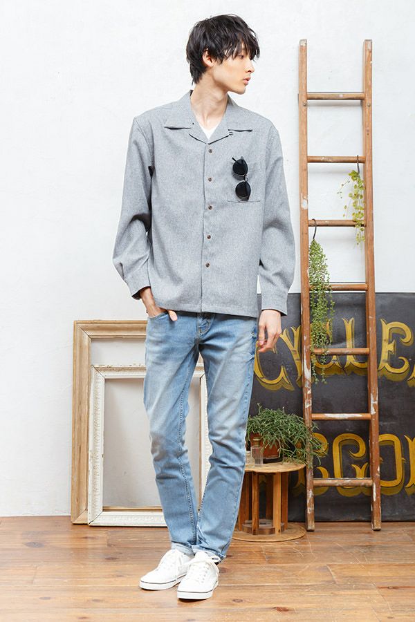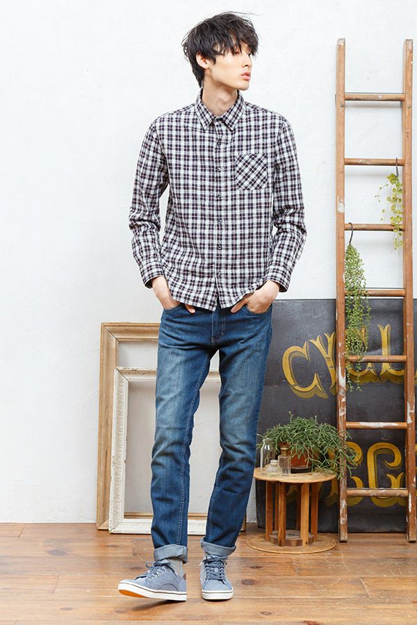 長袖シャツ×半袖Tシャツ×デニムパンツ(3点セット)
