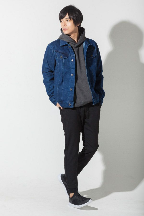 デニムジャケット×プルオーバーパーカー×半袖無地Tシャツ×パンツ(4点セット)