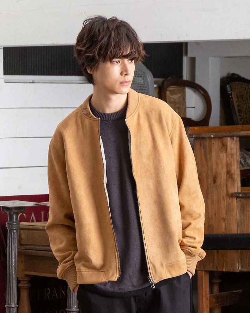 アウターから春らしさを出すのであれば、ベージュのスエード調のブルゾンがオシャレ!