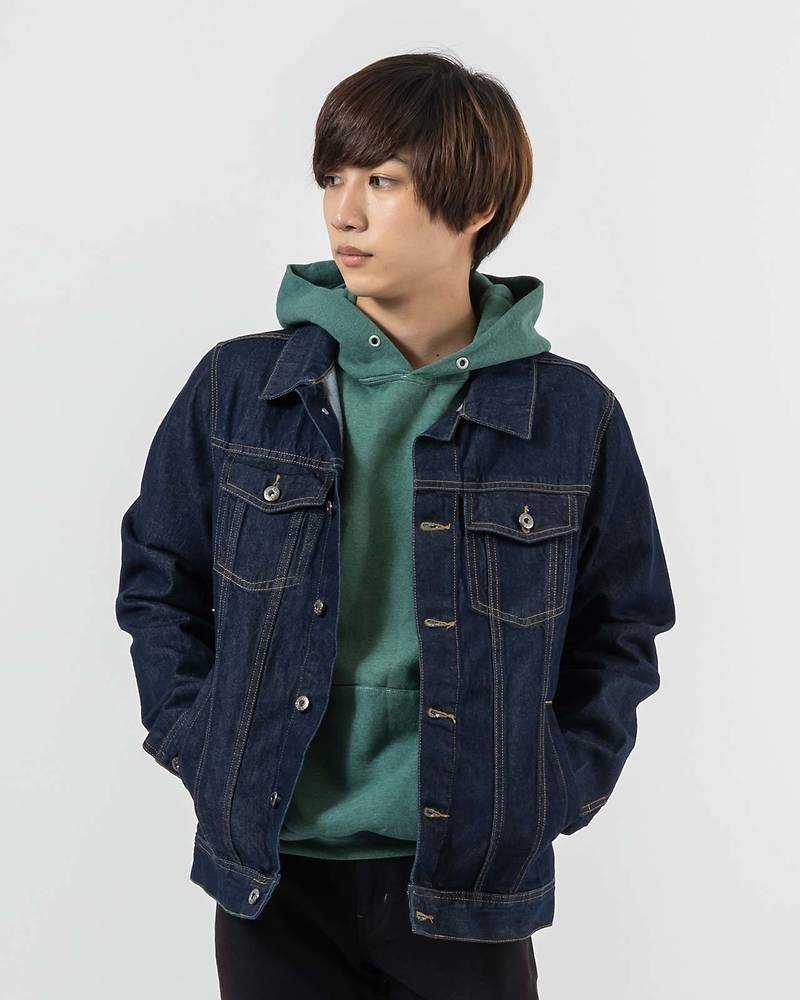 男らしさを引き出す、暗めトーンのデニムジャケット