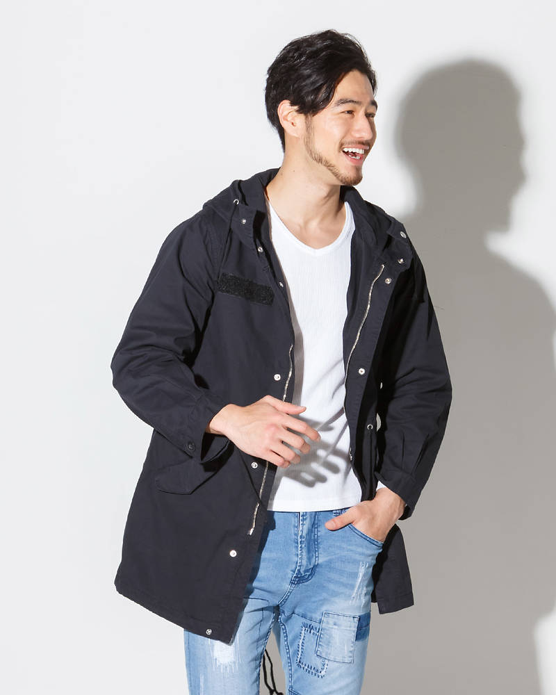 ミリタリーアイテムなのでカジュアル感な印象もありながらも、着丈の長さから大人の余裕を感じさせることができます。