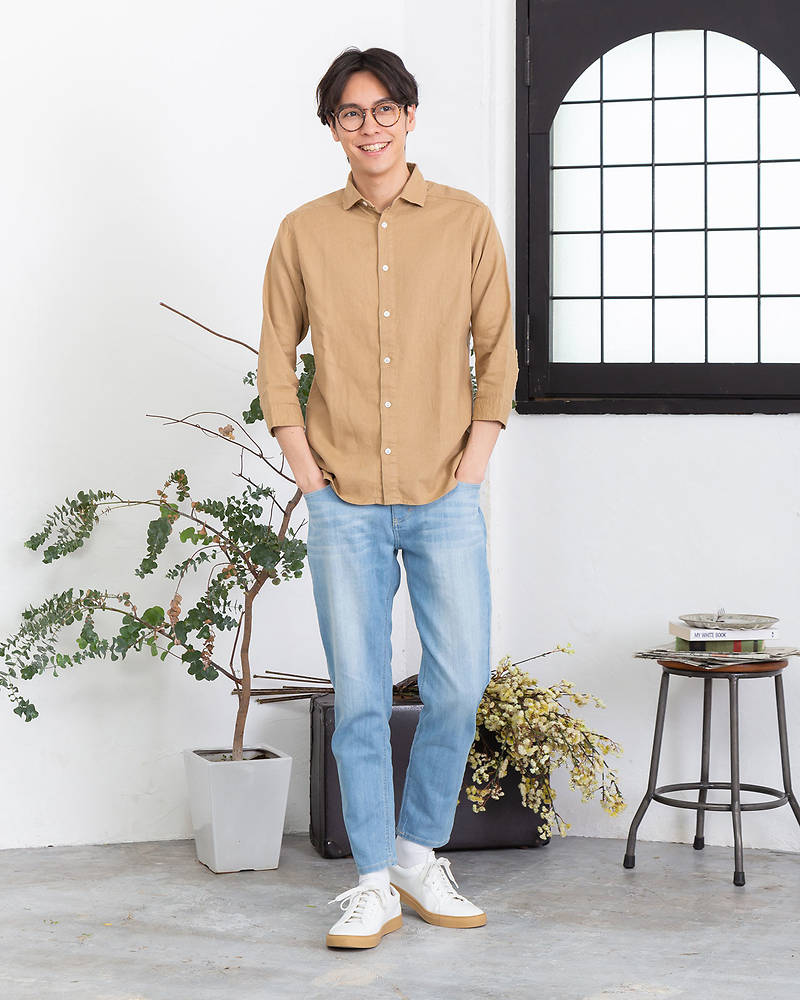 軽やかなコットンシャツに、動きやすいリネンパンツを合わせると、春の息吹を感じられます。
