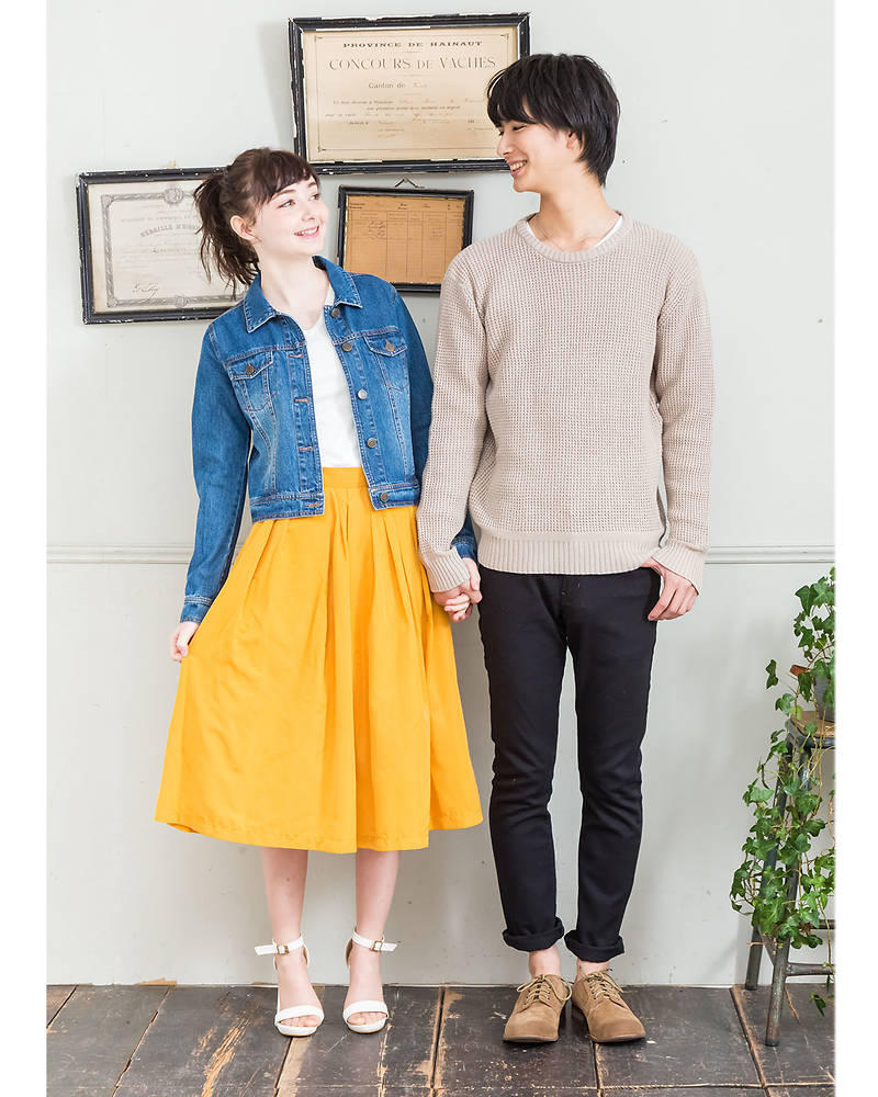 トップスは風合いのあるニットや軽いシャツでレイヤードを。