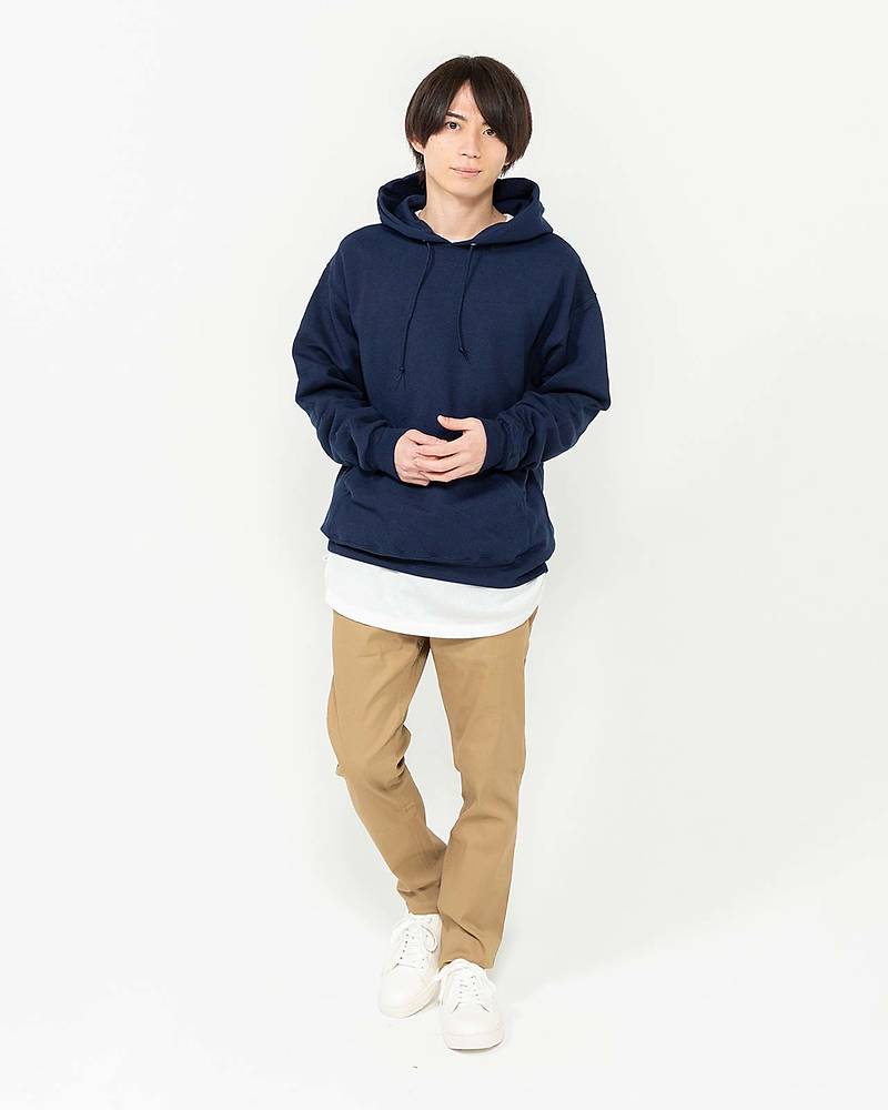 中にパーカーを合わせるのは勿論、落ち着いた色のカットソーやシャツと合わせて大人っぽく着てもよし。