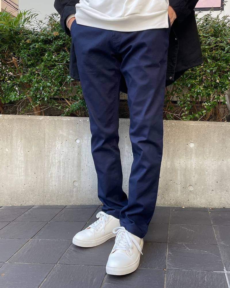 細身のチノパンを選ぶことでスッキリと綺麗にまとまっています!