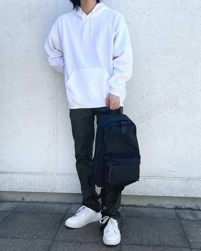 トレンドのオーバーサイズパーカーもチノパンと組み合わせやすいアイテムでしょう!