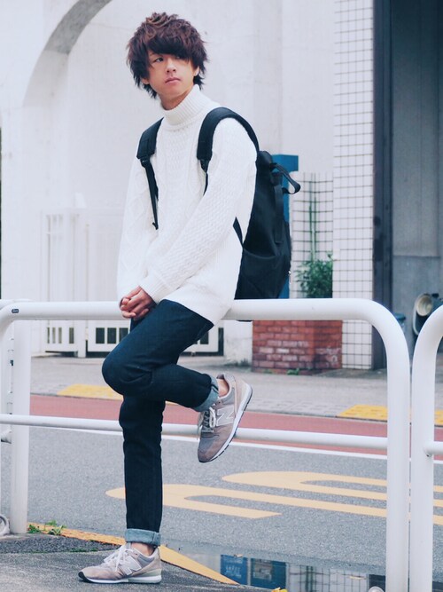ロールアップしたジーンズにニューバランススニーカーで足元にしっかりとアクセントを作っているので、すっきりとした印象にまとまっています!