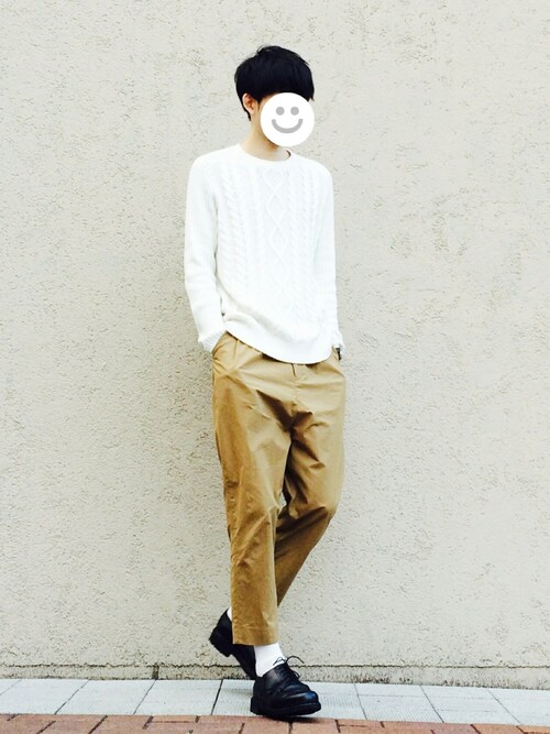 ほどよくラフに着こなした王道ケーブルニットコーデです。