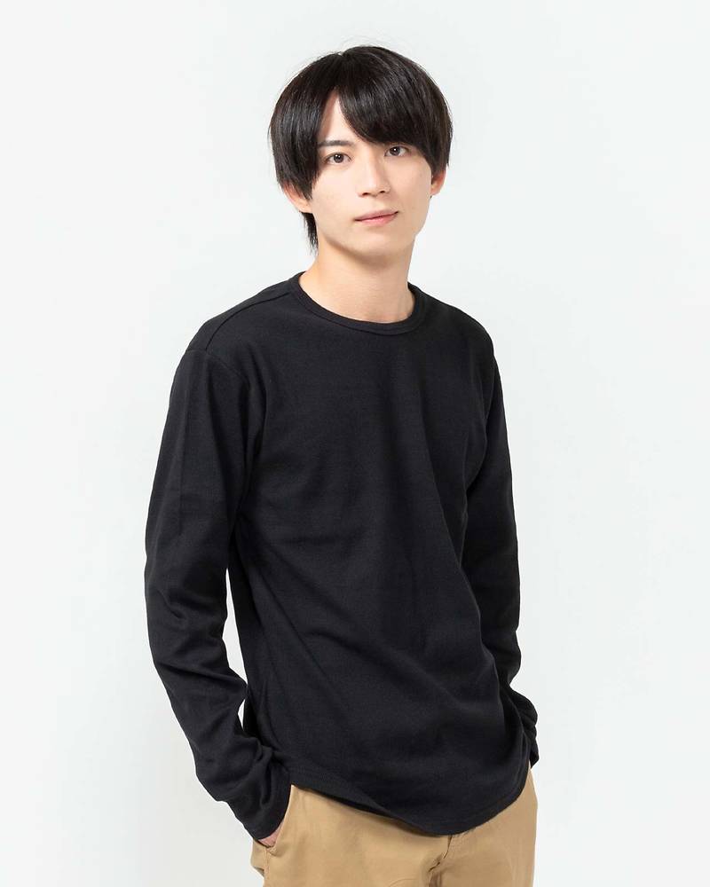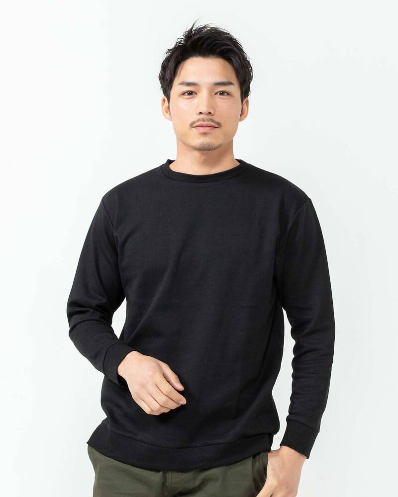 スパンテレコクルーネック長袖Tシャツ(ブラック)