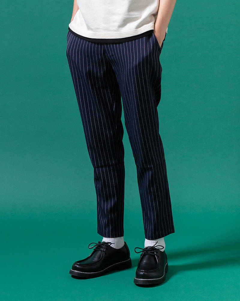 ストライプの縦ラインが効いていて、脚をスラッと見せてくれます。