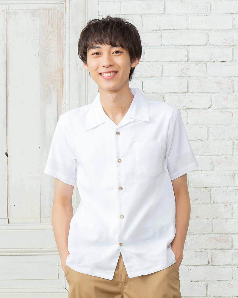 綿麻ストレッチオープンカラー半袖シャツ(ホワイト)