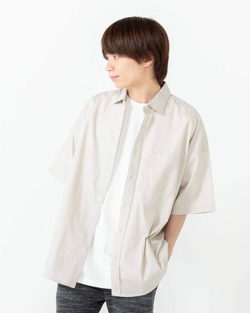 ブロードドロップショルダー半袖シャツ(グレージュ)