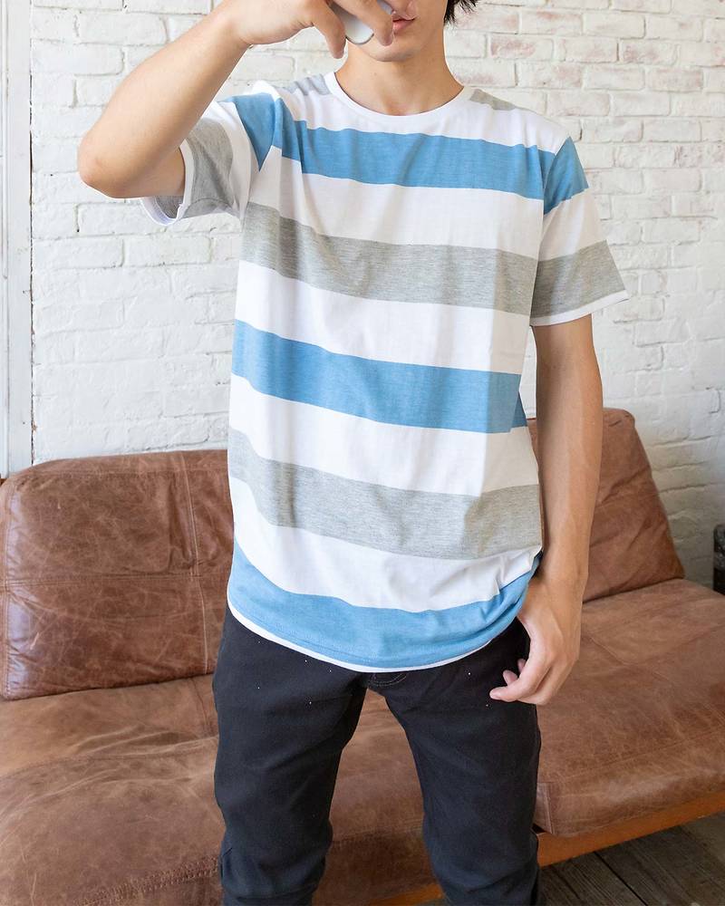 ボーダー半袖Tシャツ(ブルーxグレー)