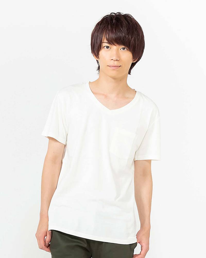 まずは定番中の定番、白Tシャツですが、こちらは胸ポケットが付いていたり、首元はVネックになっているので肌着感がなく1枚でも十分かっこよく着こなせます。