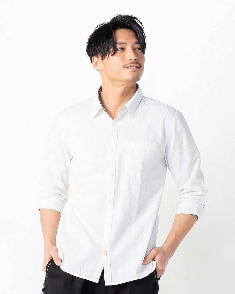 綿麻ストレッチ七分袖シャツ(ホワイト)