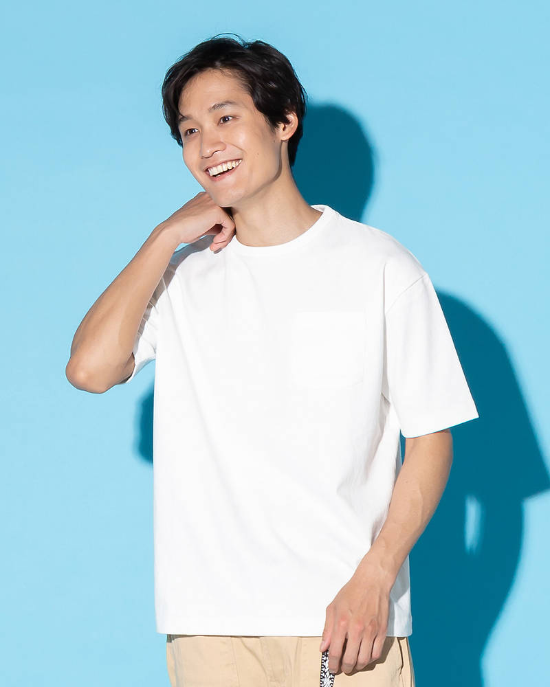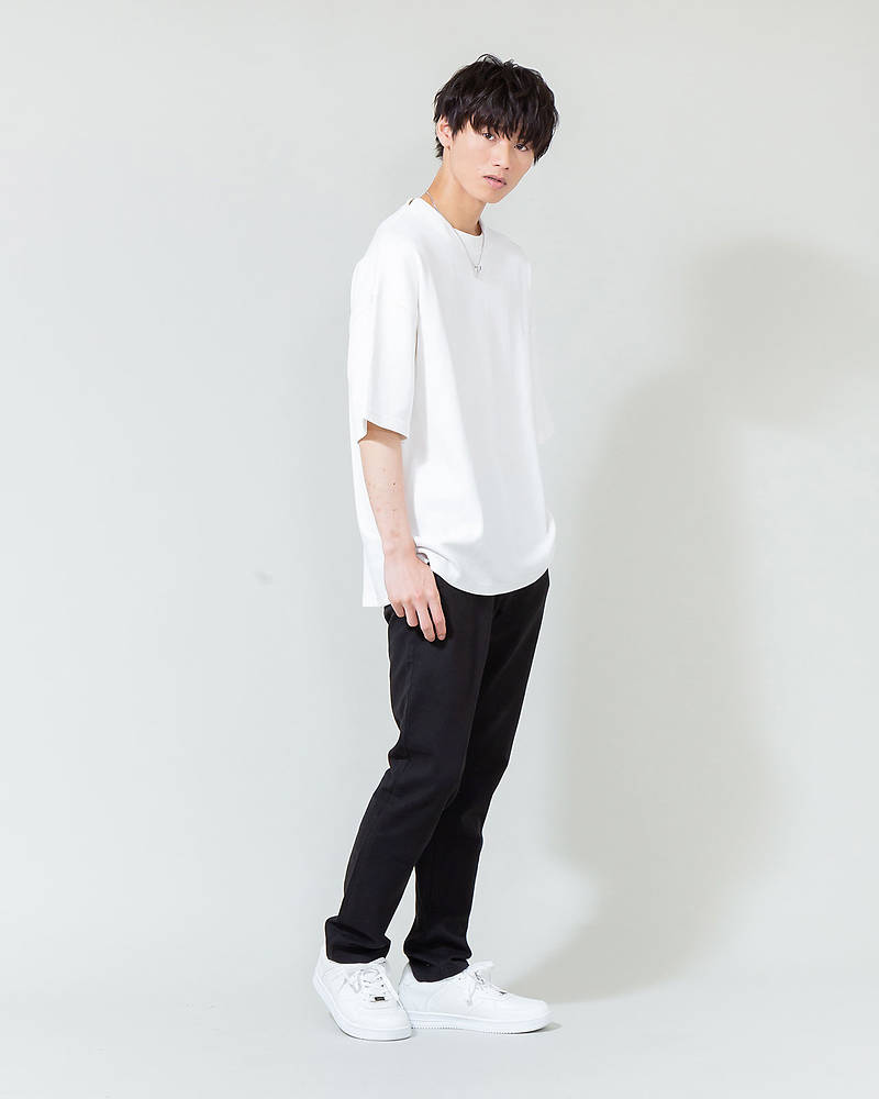 ドロップショルダーTシャツでしっかりと「流行りのビッグシルエット」を意識。