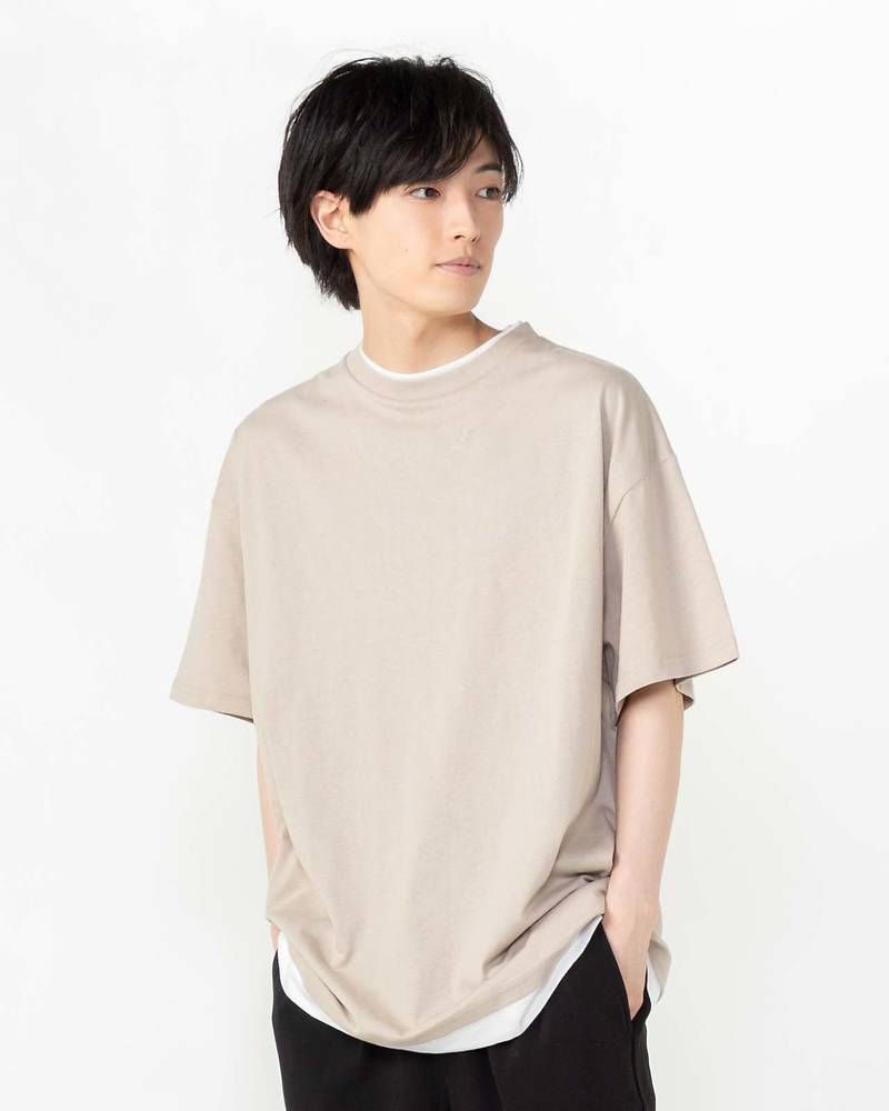 ビッグシルエットWネック五分袖Tシャツ(ベージュ)