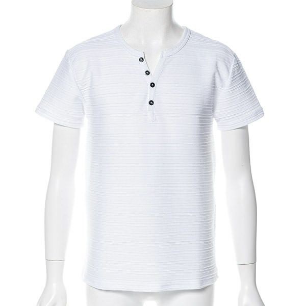 タックジャガードヘンリー半袖Tシャツ(ホワイト)