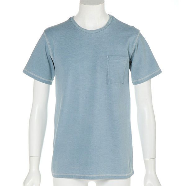 天笠インディゴ半袖Tシャツ(ブリーチ)