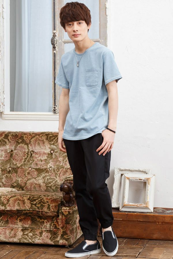 こちらはナチュラルなブルーカラーの半袖Tシャツです。ややルーズ寄りのシルエットと胸ポケットがトレンド感を演出しています。ハーフパンツやジョガーパンツと合わせることでトレンド感のある爽やかなリゾートスタイルを作ることができますよ。