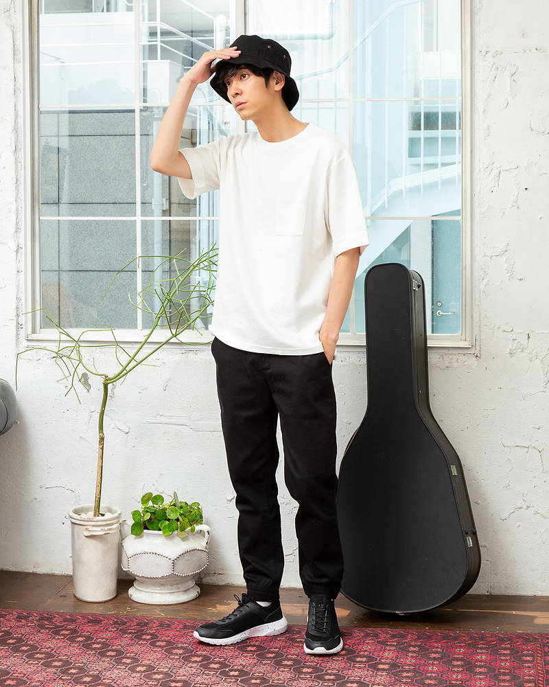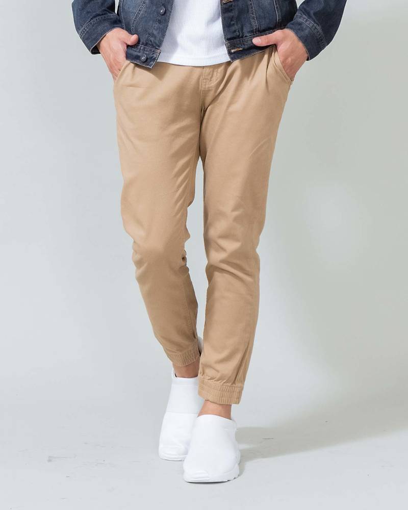 ベーシックなチノパンのきれいめ感と、ジョガーパンツのスポーティで軽やかな印象のいいとこどりボトムがポイント!