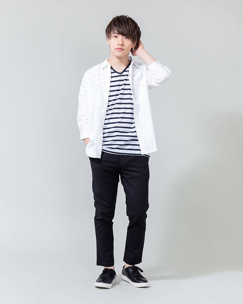 七分袖シャツ×半袖Tシャツ×パンツ