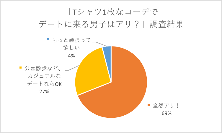 そこで、こちらも女性100人に「デートにTシャツ1枚コーデで来ても許せますか?」というアンケートを実施しました。