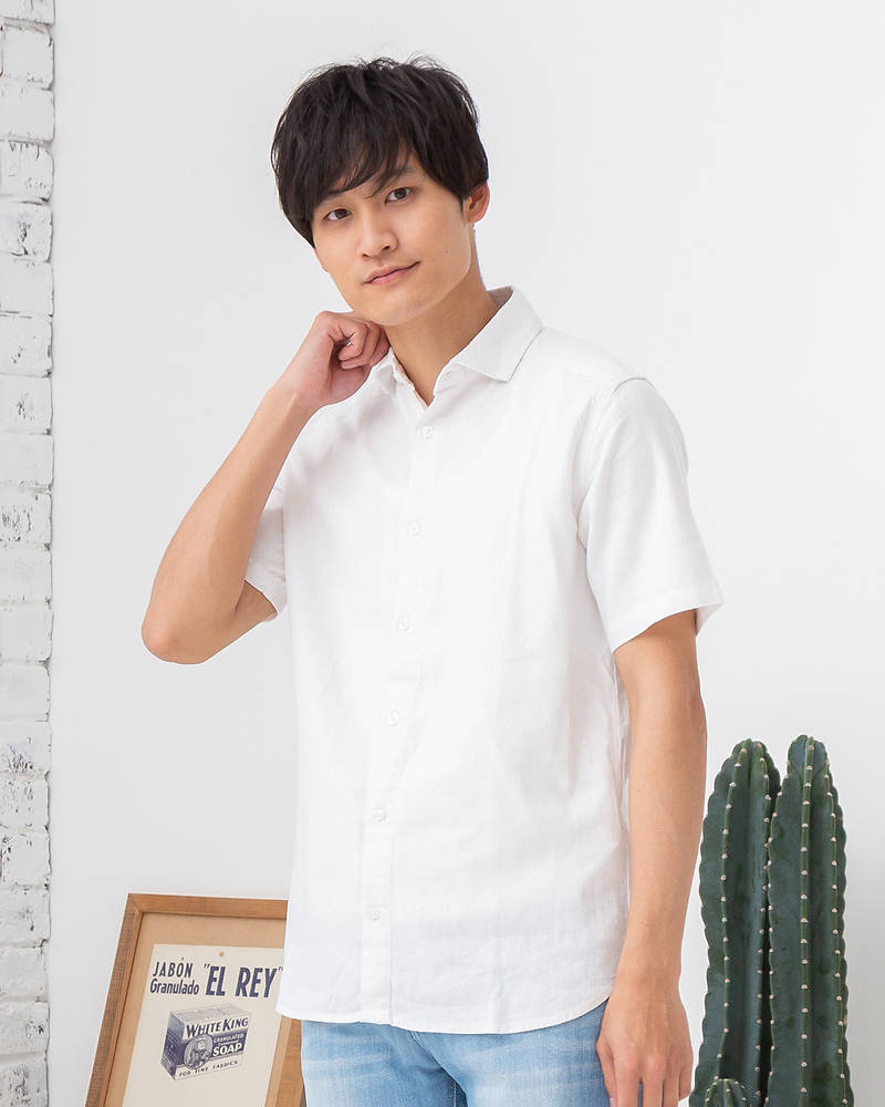 フレンチリネンレーヨン半袖シャツ(ホワイト)