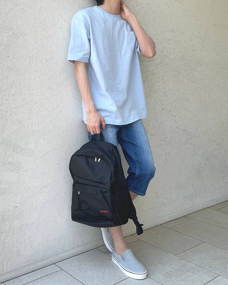 さらに洗練された雰囲気を出すにはリュックやアクセサリーのアイテムプラスがおすすめです。