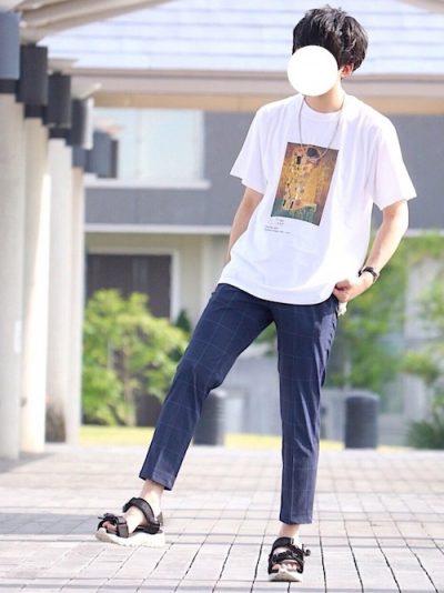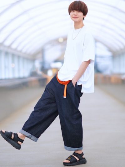 少し大きめサイズながらオーソドックスな白Tを使ったコーデです。