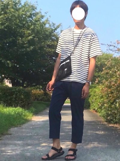 ボーダーTシャツのシンプルなコーデ。