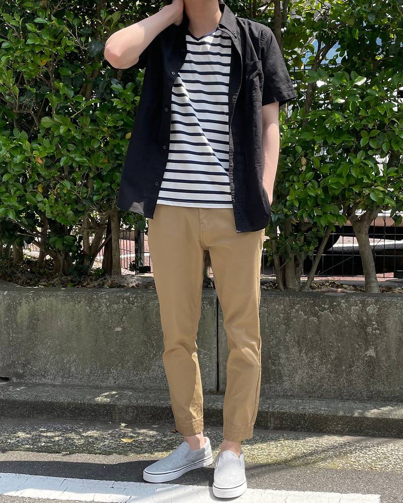 【20:半袖シャツ×半袖Tシャツ×パンツ】
