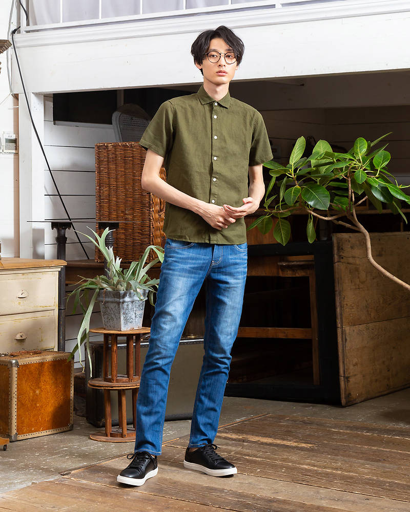 「半袖シャツの前を締めた」夏のおすすめのトータルコーディネート