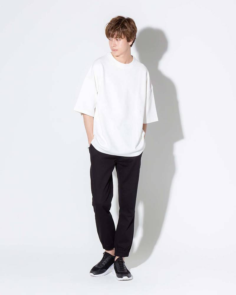 足元がすっきりとしているジョガーパンツは、清潔感を出すための楽ちんアイテム!