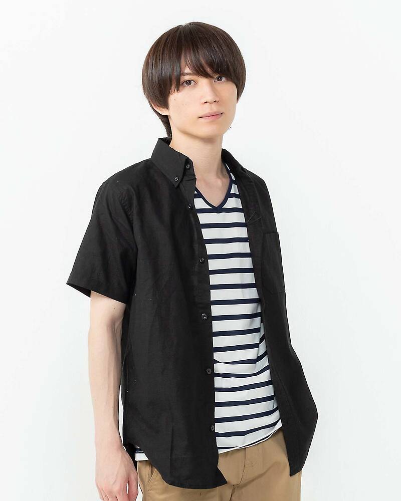 綿麻半袖シャツ+ボーダー半袖Tシャツアンサンブル(2点セット)(ブラック)