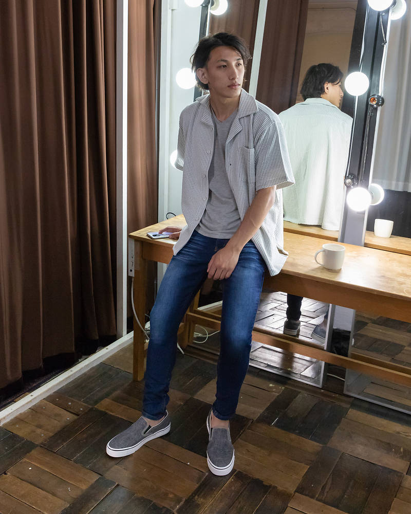 淡いジーンズはカジュアルになりすぎやすいのですが、サイズをスッキリさせていることで清潔感のある爽やかな印象になっていますね