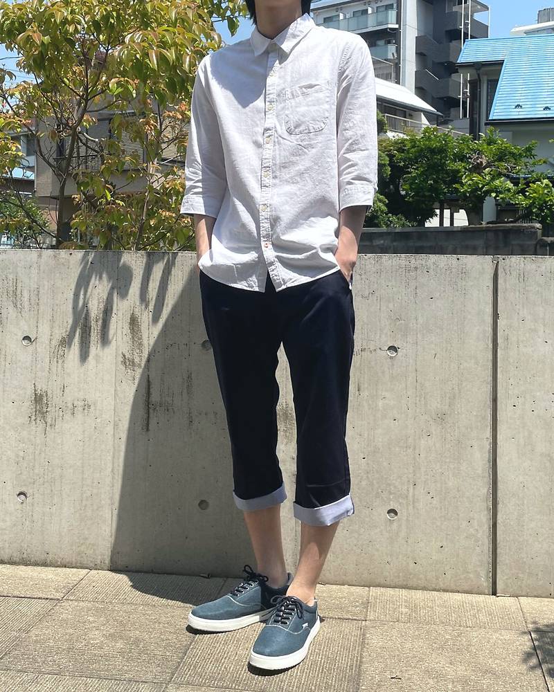 使い勝手抜群のクロップドパンツと七分丈シャツ