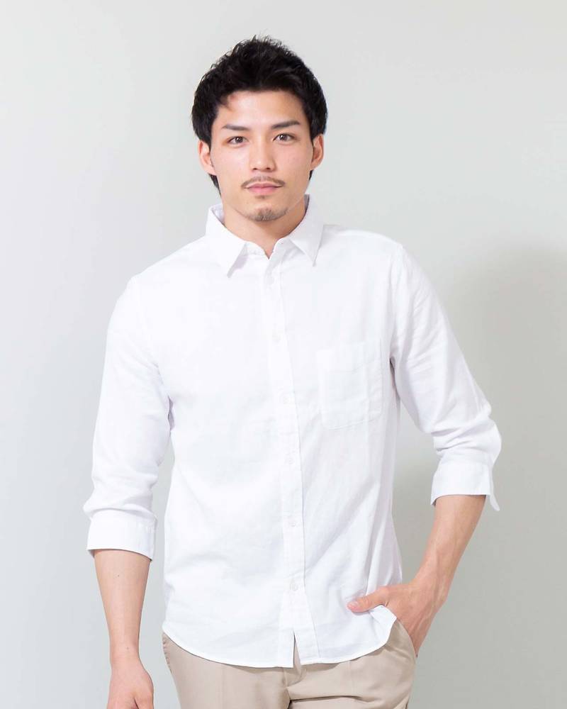 綿麻ストレッチレギュラー七分袖シャツ(ホワイト)