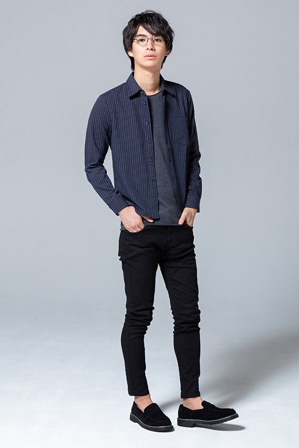 洗練された大人カジュアルは幅広いシーンで大活躍◎シャツのさりげないストライプ柄がコーデ全体のアクセントに♪
