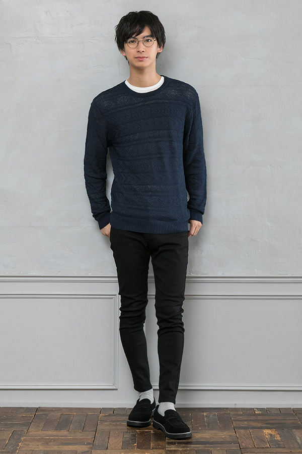 長袖シャツ×サマーニット×パンツ(3点セット)