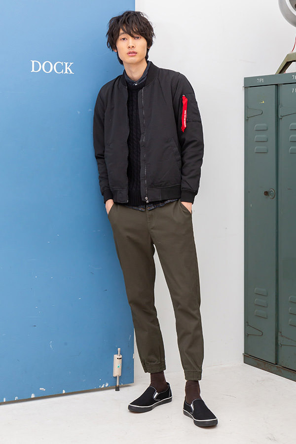 スッキリしたシルエットで細見え効果のあるMA-1はジョガーパンツとの相性抜群◎男らしさの光るカジュアルコーデ☆