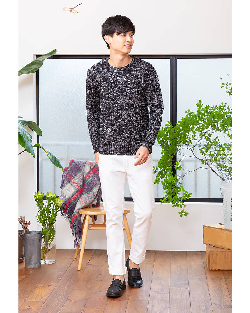 3:杢セーター×白パンツ×黒ローファー
