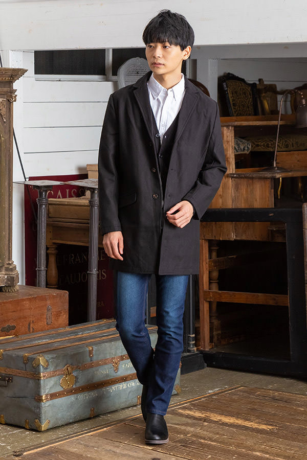 チェスターコートとシャツを合わせたスッキリめの鉄板の組み合わせ!