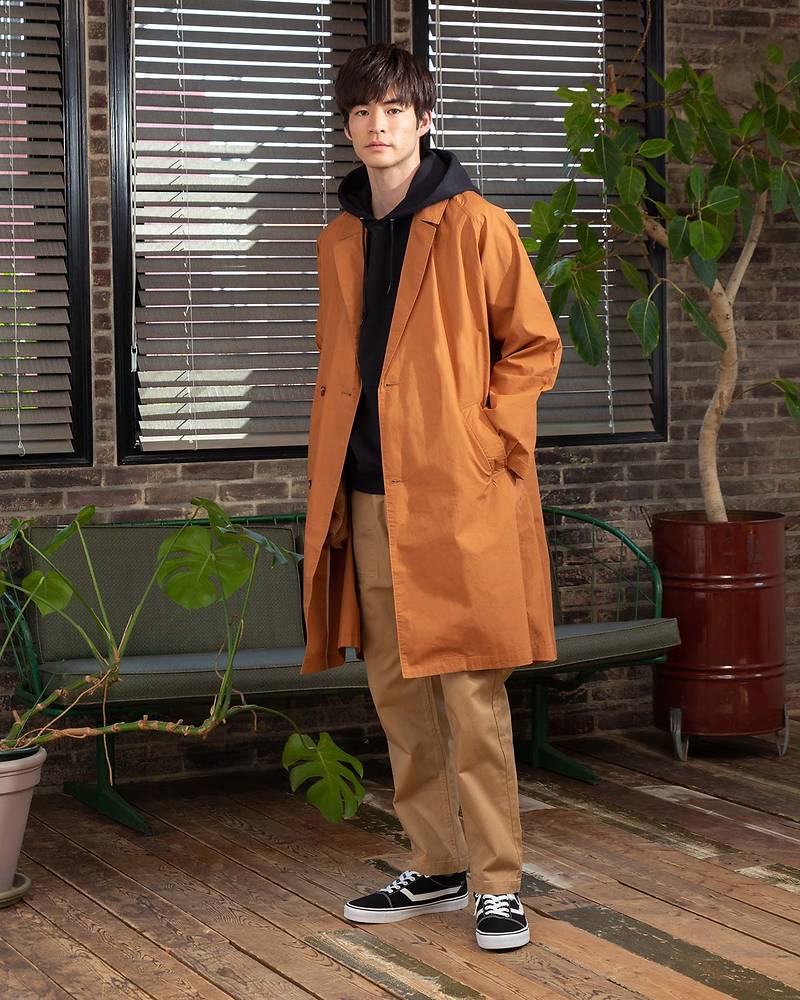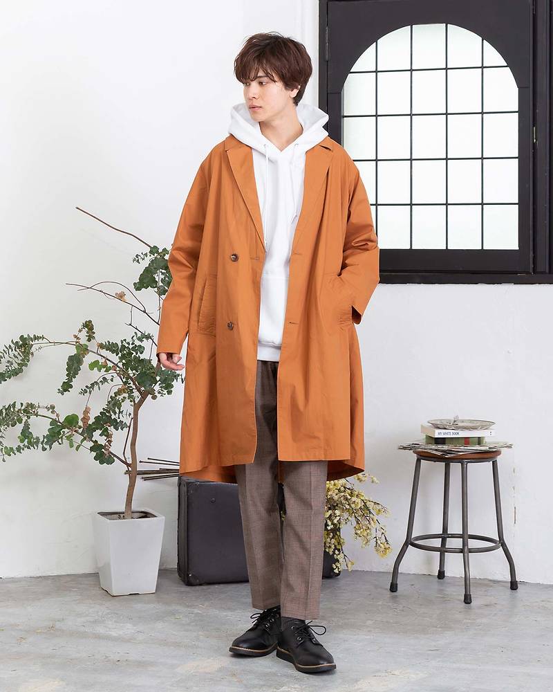 コートと合わせてオシャレ感とカジュアル感を引き上げる薄手のパーカーも必須アイテム!