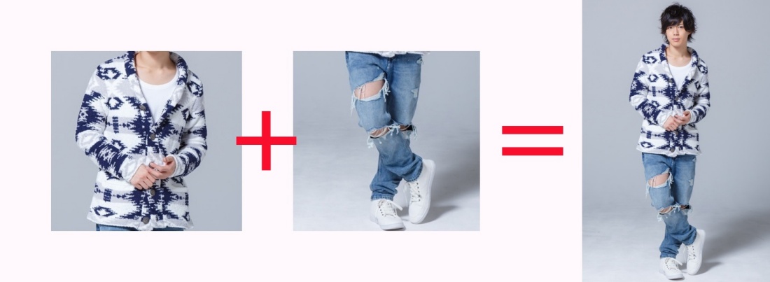 もう1つは「個性的な柄カーディガン」と「ワイルドなジーンズ」